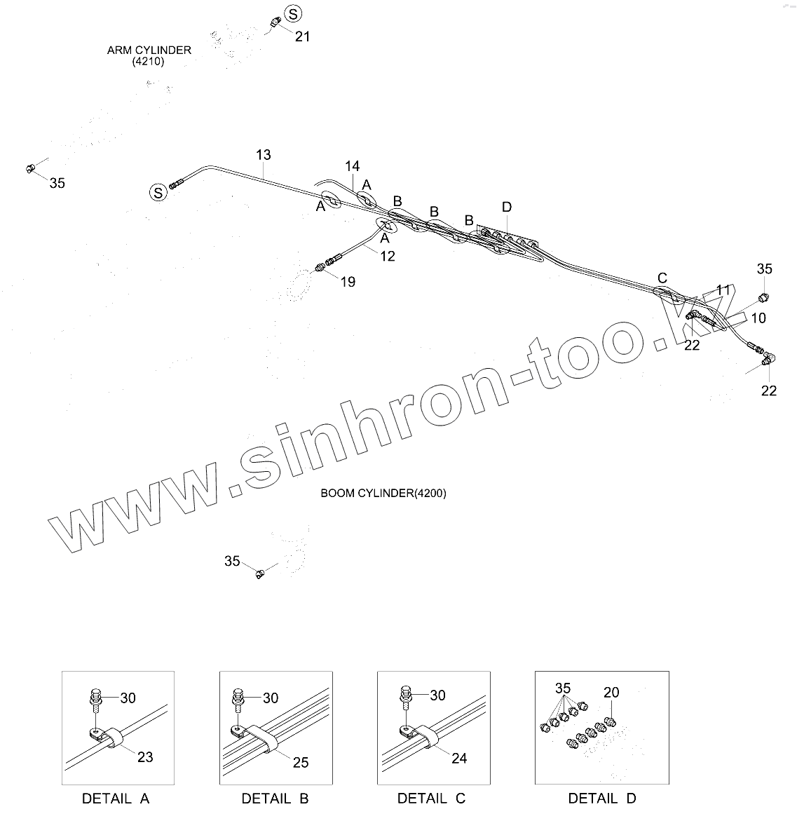Каталог запасных частей к технике: Hyundai R210W-9. BOOM GREASE LUB SYSTEM (5.55M, OPT)