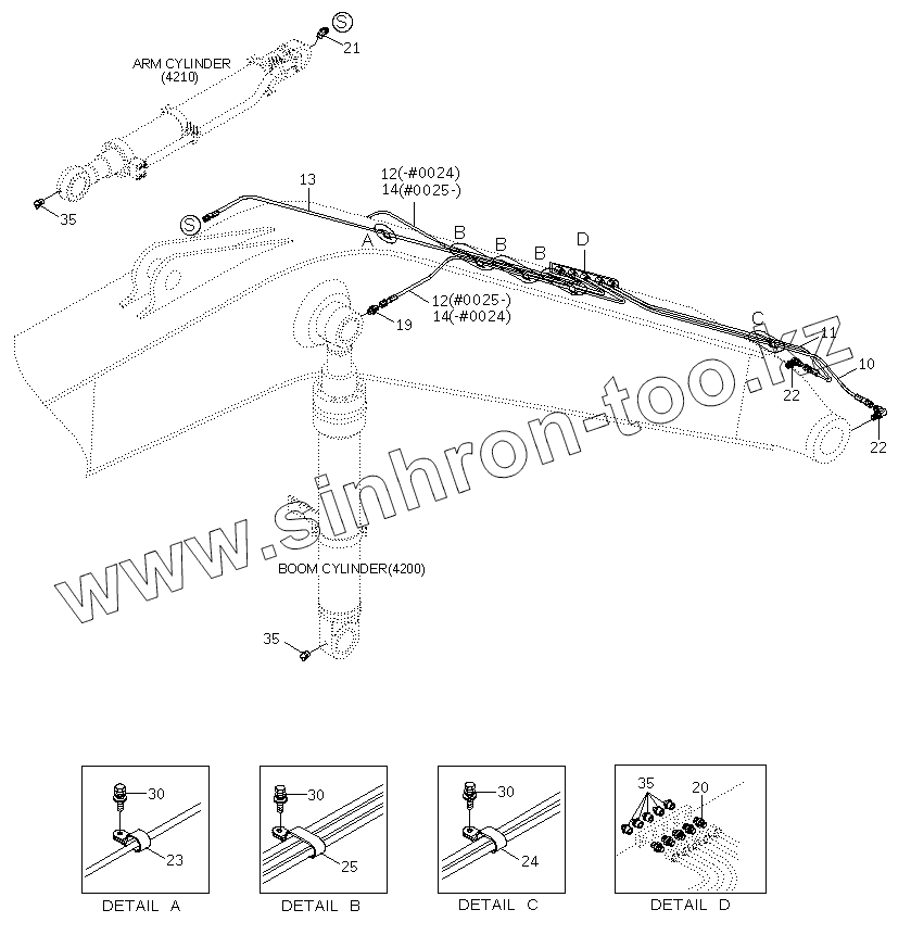 Каталог запасных частей к технике: Hyundai R210W-9. BOOM GREASE LUB SYSTEM (5.65M, STD)