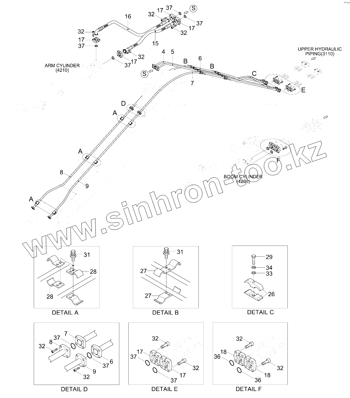 Каталог запасных частей к технике: Hyundai R210W-9. BOOM HYD PIPING (5.2M, SHORT)