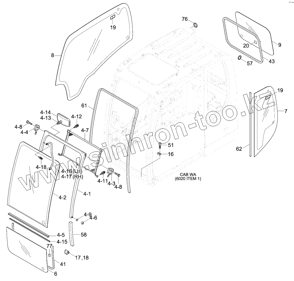 Каталог запасных частей к технике: Hyundai R210W-9. CAB ASSY (3/4)