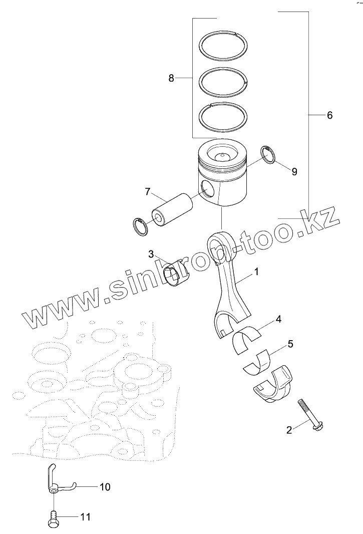 Каталог запасных частей к технике: Hyundai R210W-9. CONNECTING ROD AND PISTON