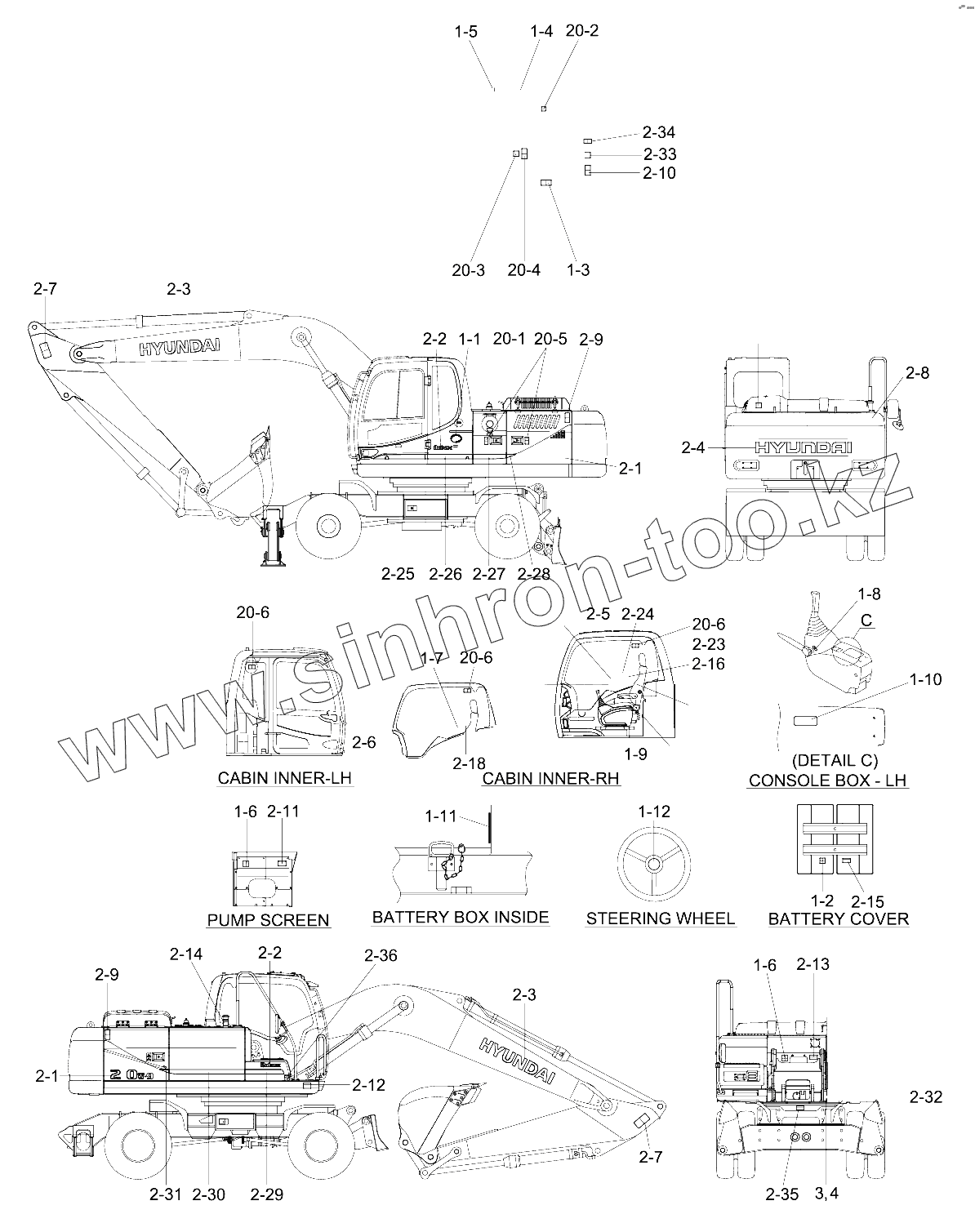 Каталог запасных частей к технике: Hyundai R210W-9. DECALS