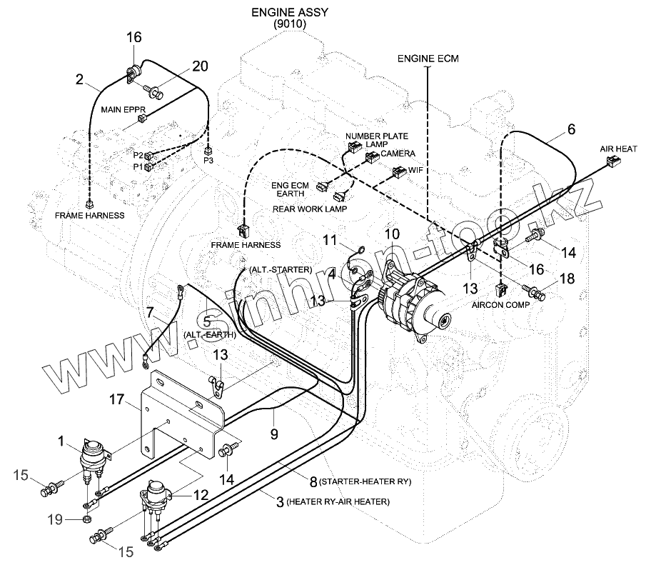 Каталог запасных частей к технике: Hyundai R210W-9. ENGINE ELECTRIC