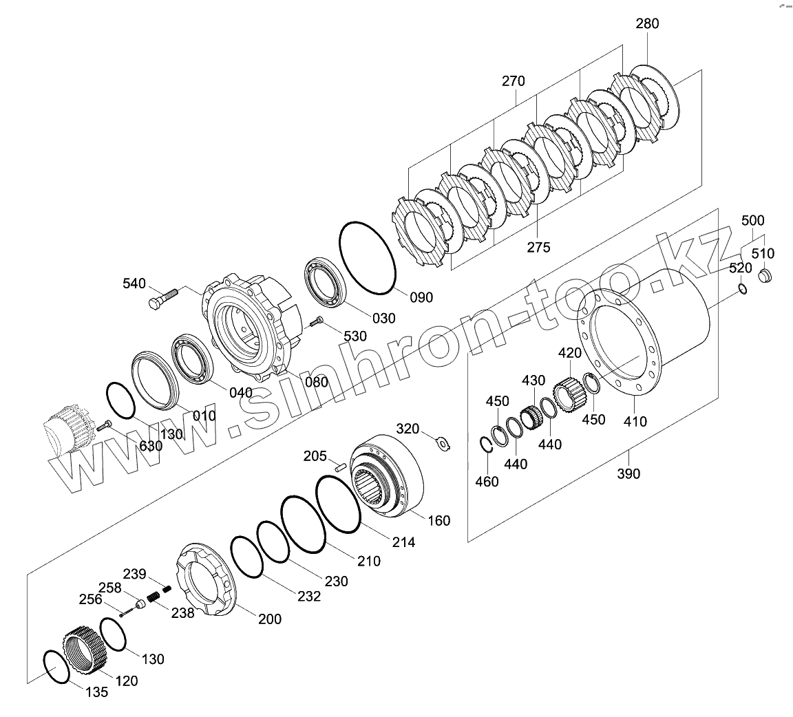 Каталог запасных частей к технике: Hyundai R210W-9. FRONT AXLE OUTPUT GROUP (-#0010)