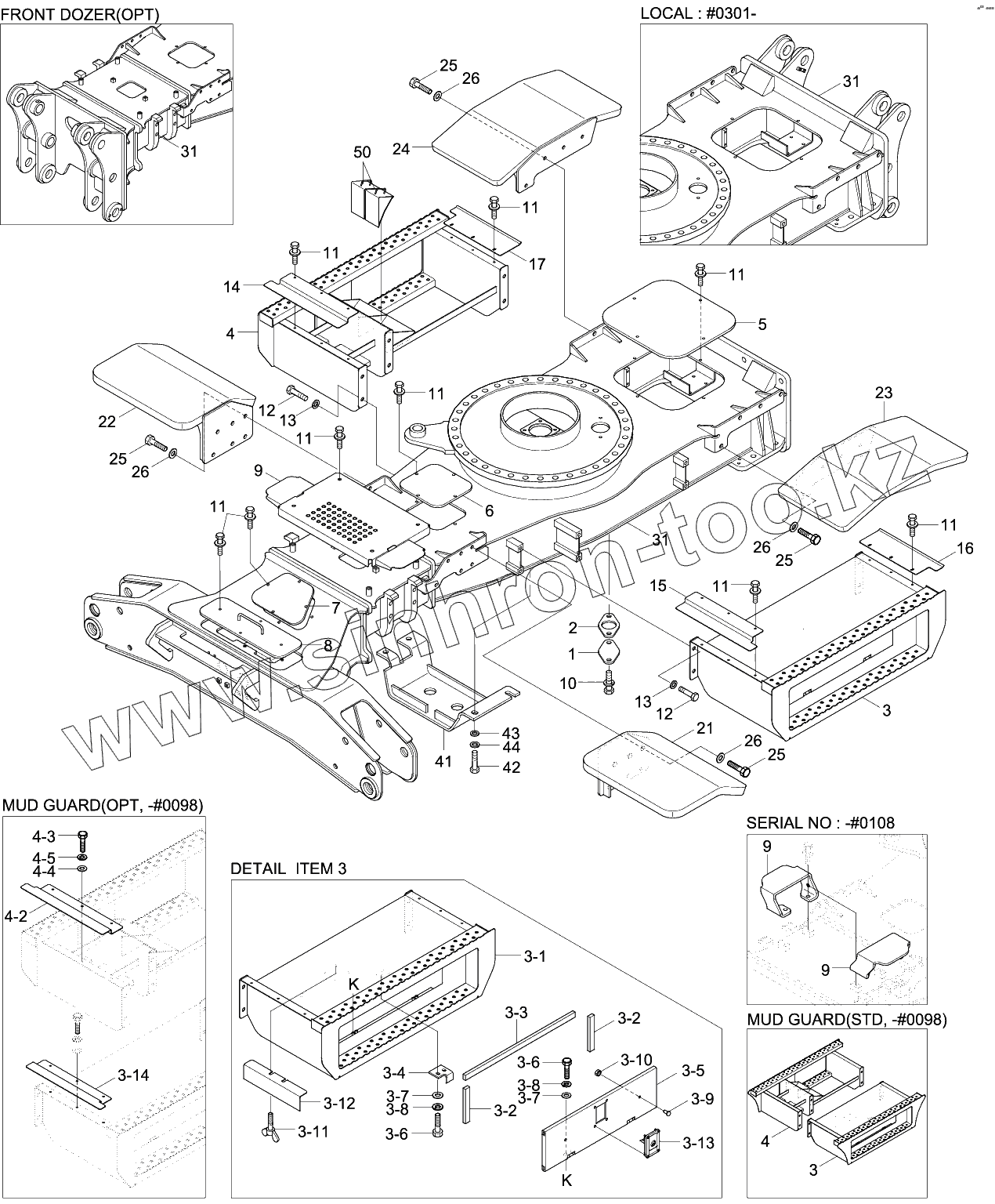 Каталог запасных частей к технике: Hyundai R210W-9. LOWER FRAME & FENDER