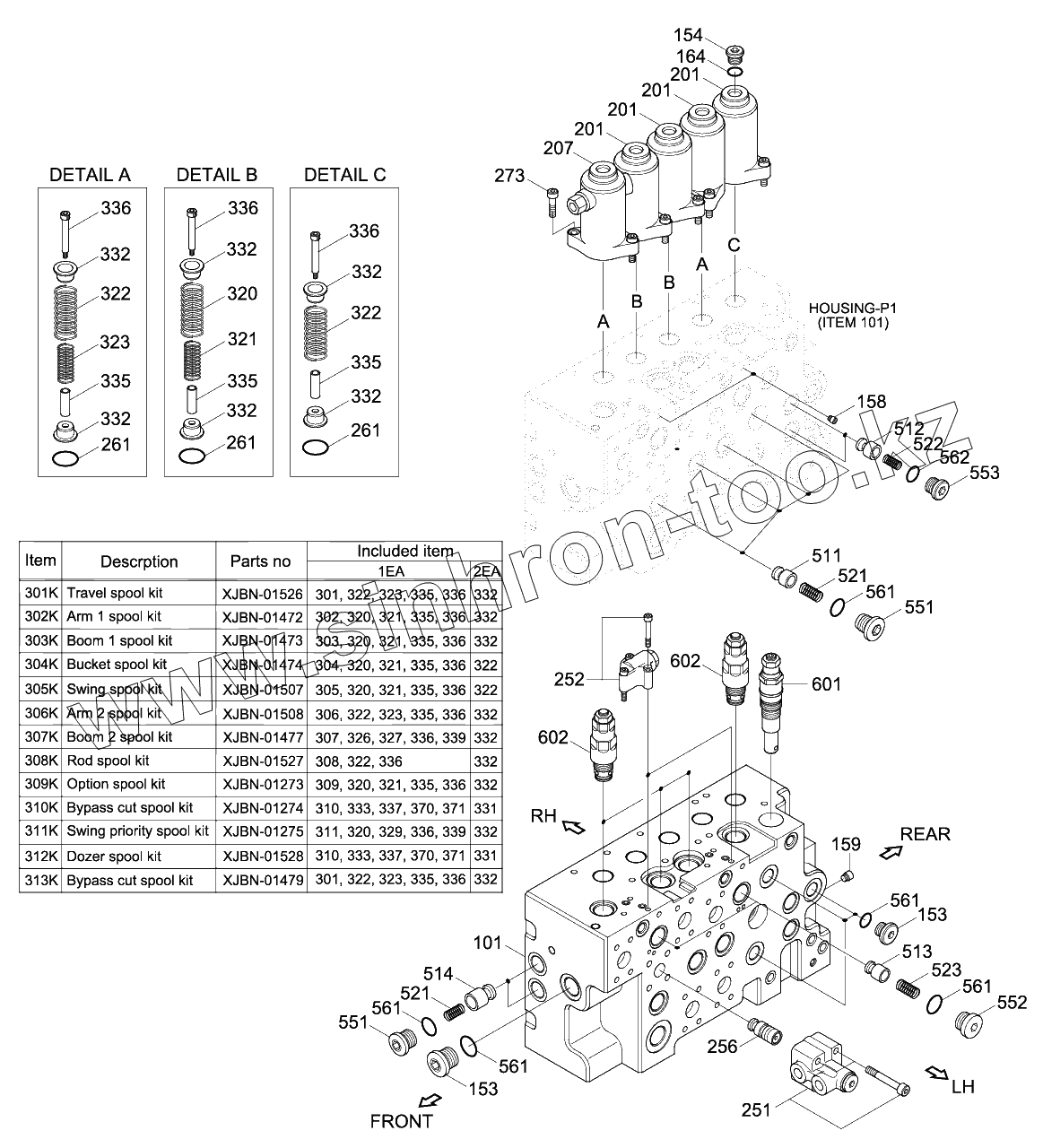 Каталог запасных частей к технике: Hyundai R210W-9. MAIN CONTROL VALVE (1/4)