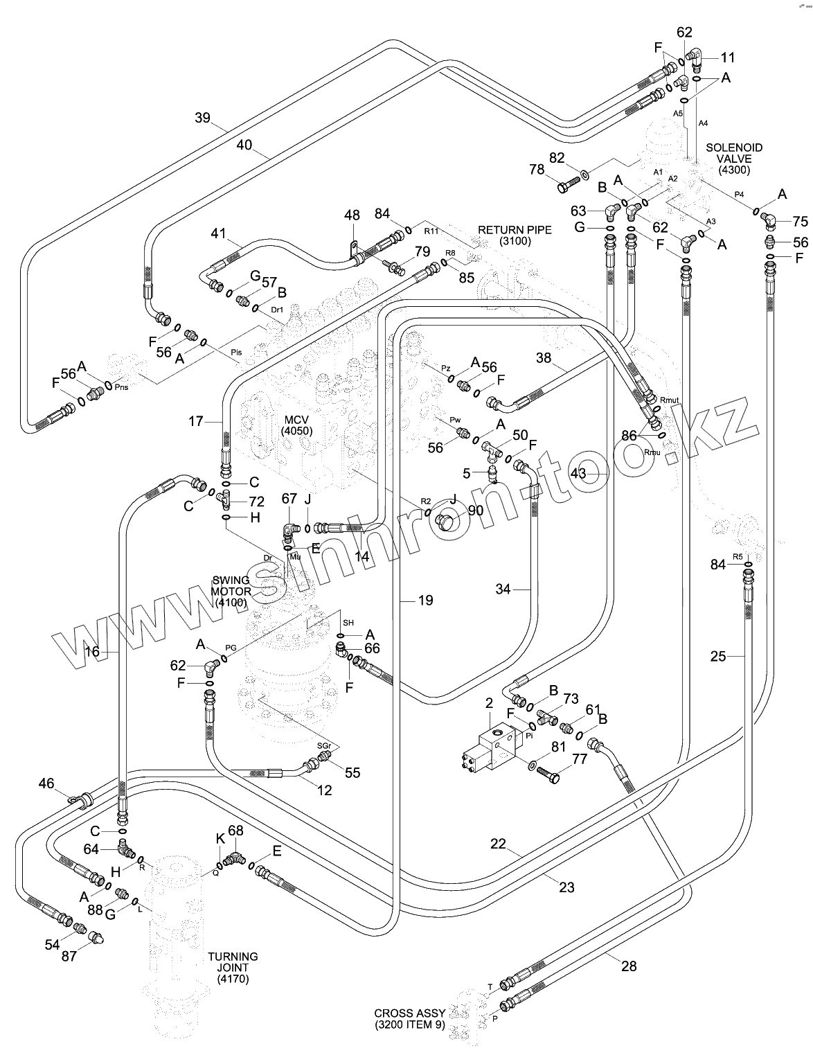 Каталог запасных частей к технике: Hyundai R210W-9. PILOT HYD PIPING (BASE 1, -#0024)