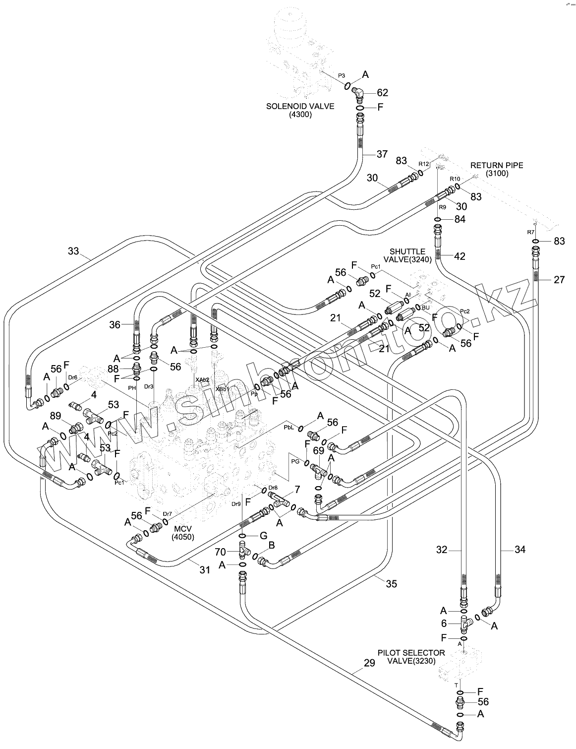 Каталог запасных частей к технике: Hyundai R210W-9. PILOT HYD PIPING (BASE 3, -#0024)