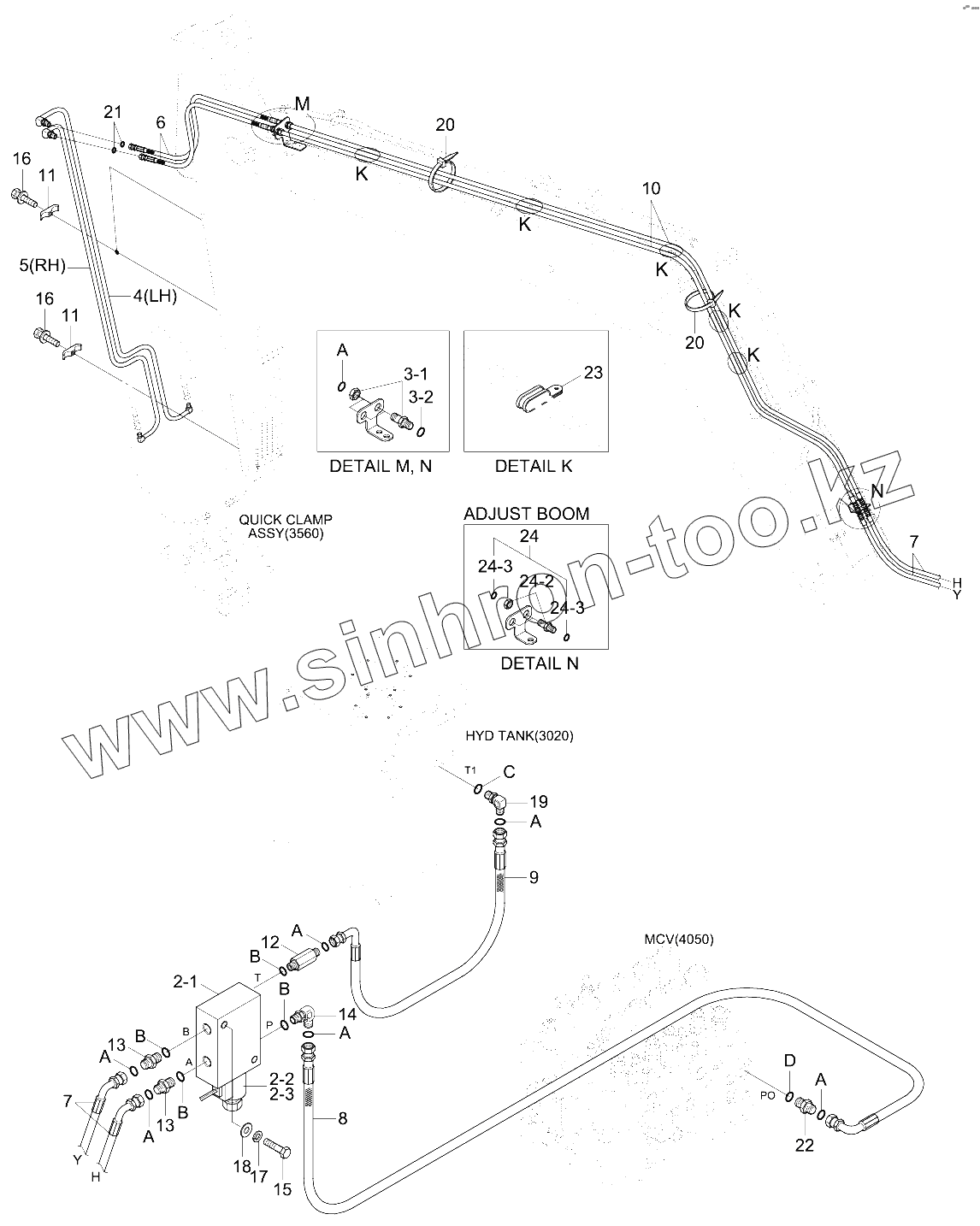 Каталог запасных частей к технике: Hyundai R210W-9. QUICK CLAMP HYD PIPING