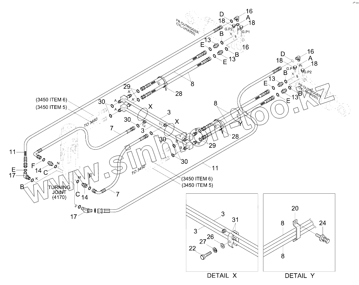 Каталог запасных частей к технике: Hyundai R210W-9. REAR OUTRIGGER HYD PIPING (-#0285)