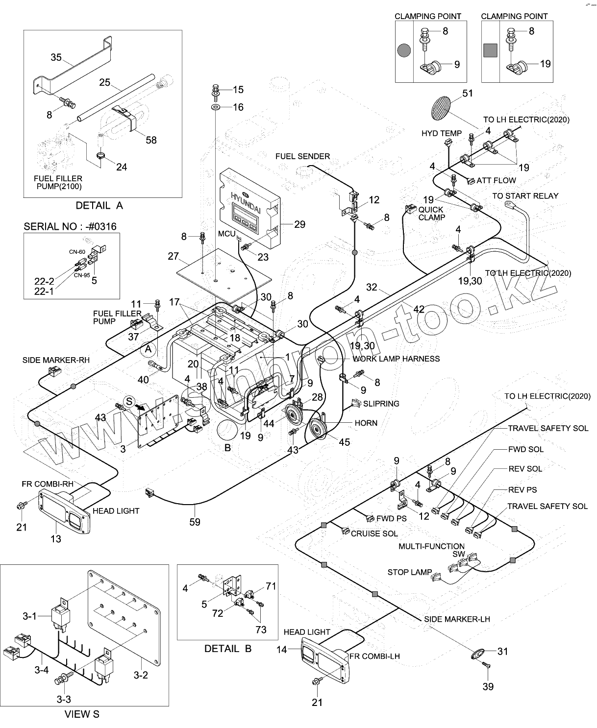 Каталог запасных частей к технике: Hyundai R210W-9. RH ELECTRIC