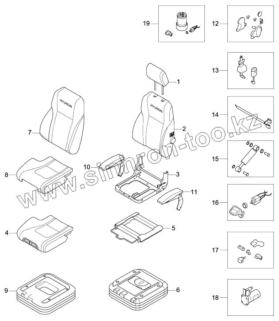 Каталог запасных частей к технике: Hyundai R210W-9. SEAT (SUSPENSION, 2"AIR RIDE, HEATED)