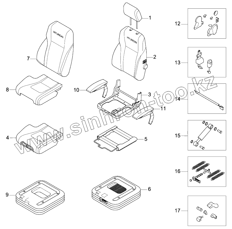 Каталог запасных частей к технике: Hyundai R210W-9. SEAT (SUSPENSION, HEATED, STD)