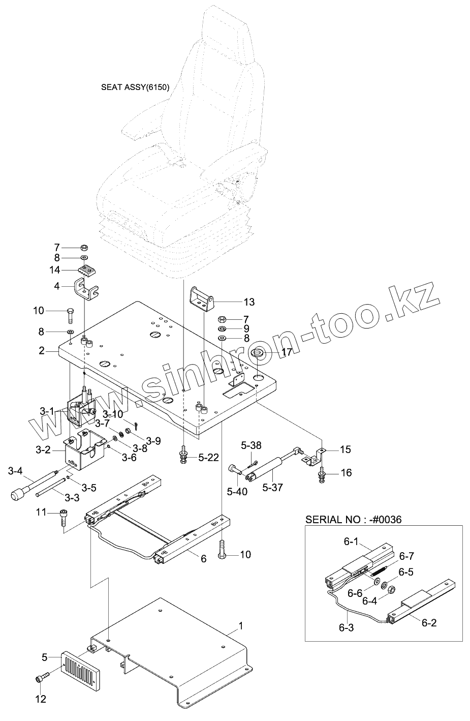 Каталог запасных частей к технике: Hyundai R210W-9. SEAT BASE ASSY