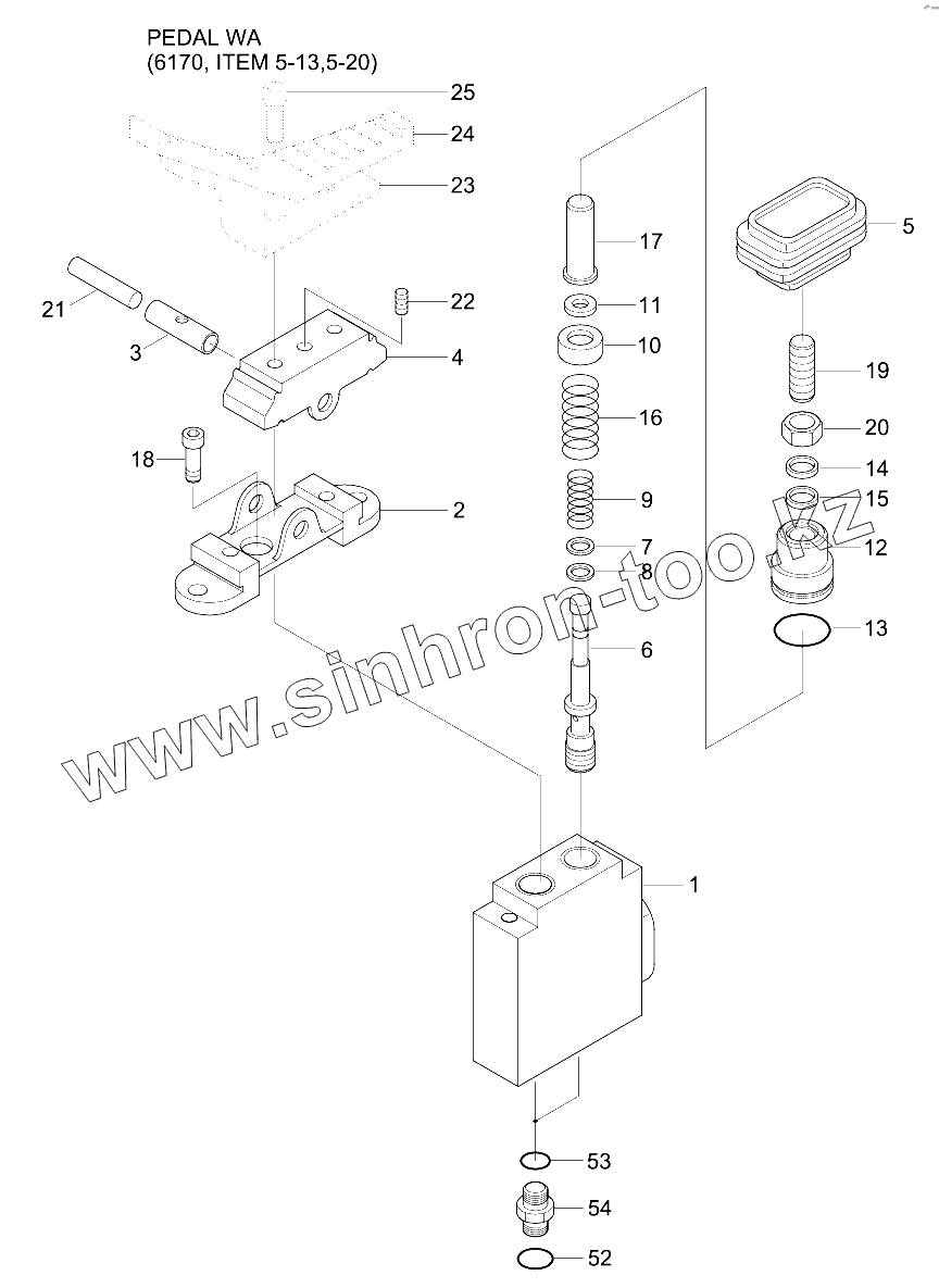 Каталог запасных частей к технике: Hyundai R210W-9. SINGLE PEDAL (DOUBLE ACTING)