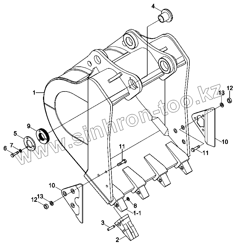 Каталог запасных частей к технике: Hyundai R330LC-9A. BUCKET (4 TEETH, HEAVY DUTY)