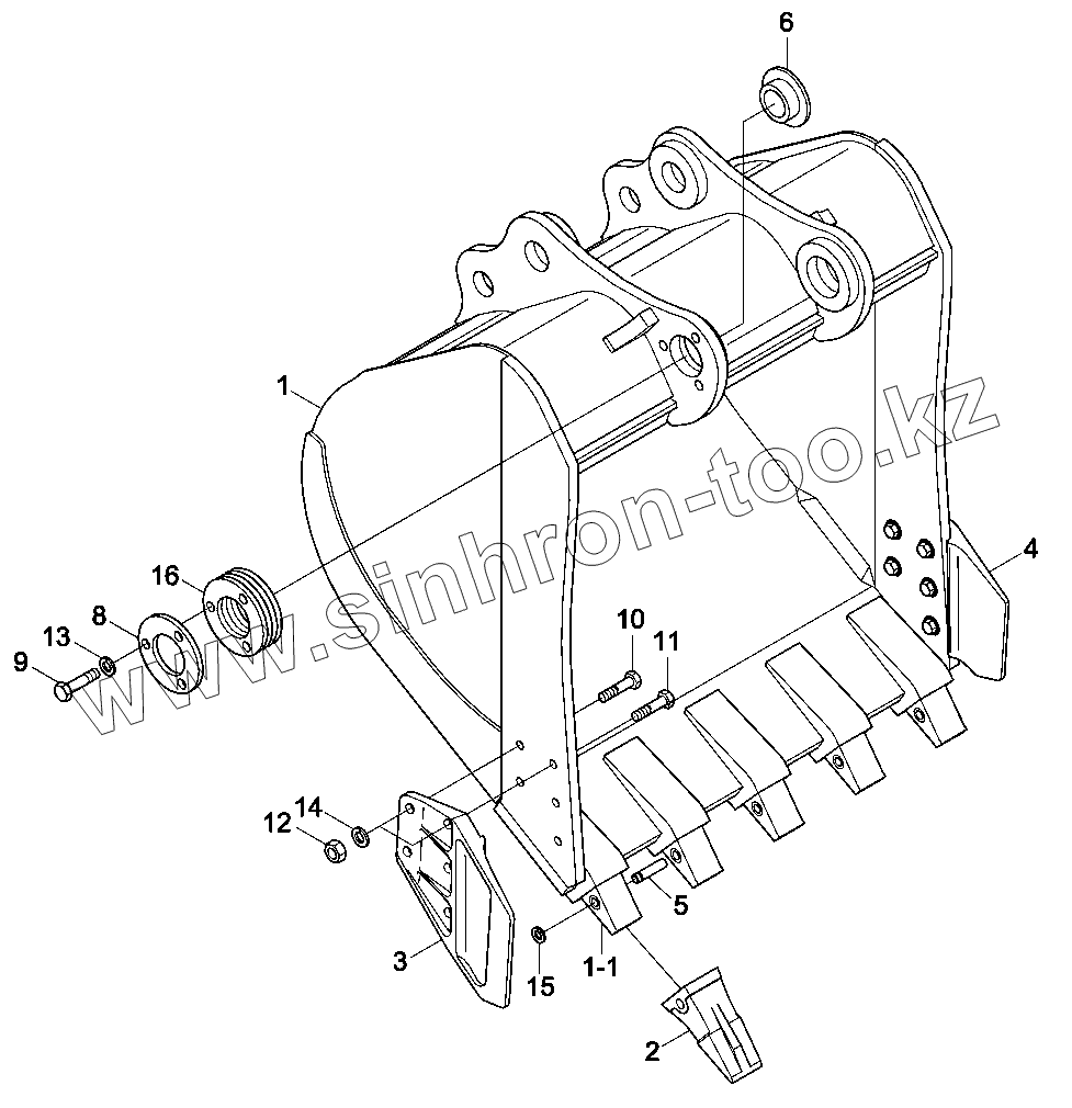 Каталог запасных частей к технике: Hyundai R330LC-9A. BUCKET (5 TEETH)