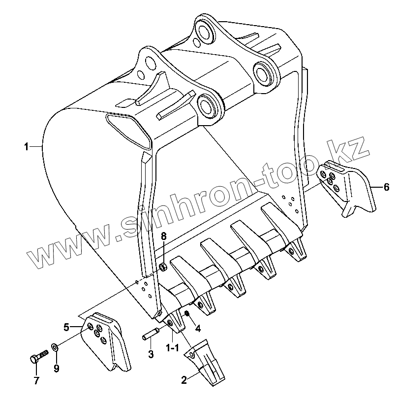 Каталог запасных частей к технике: Hyundai R330LC-9A. BUCKET (5 TEETH, CAST)