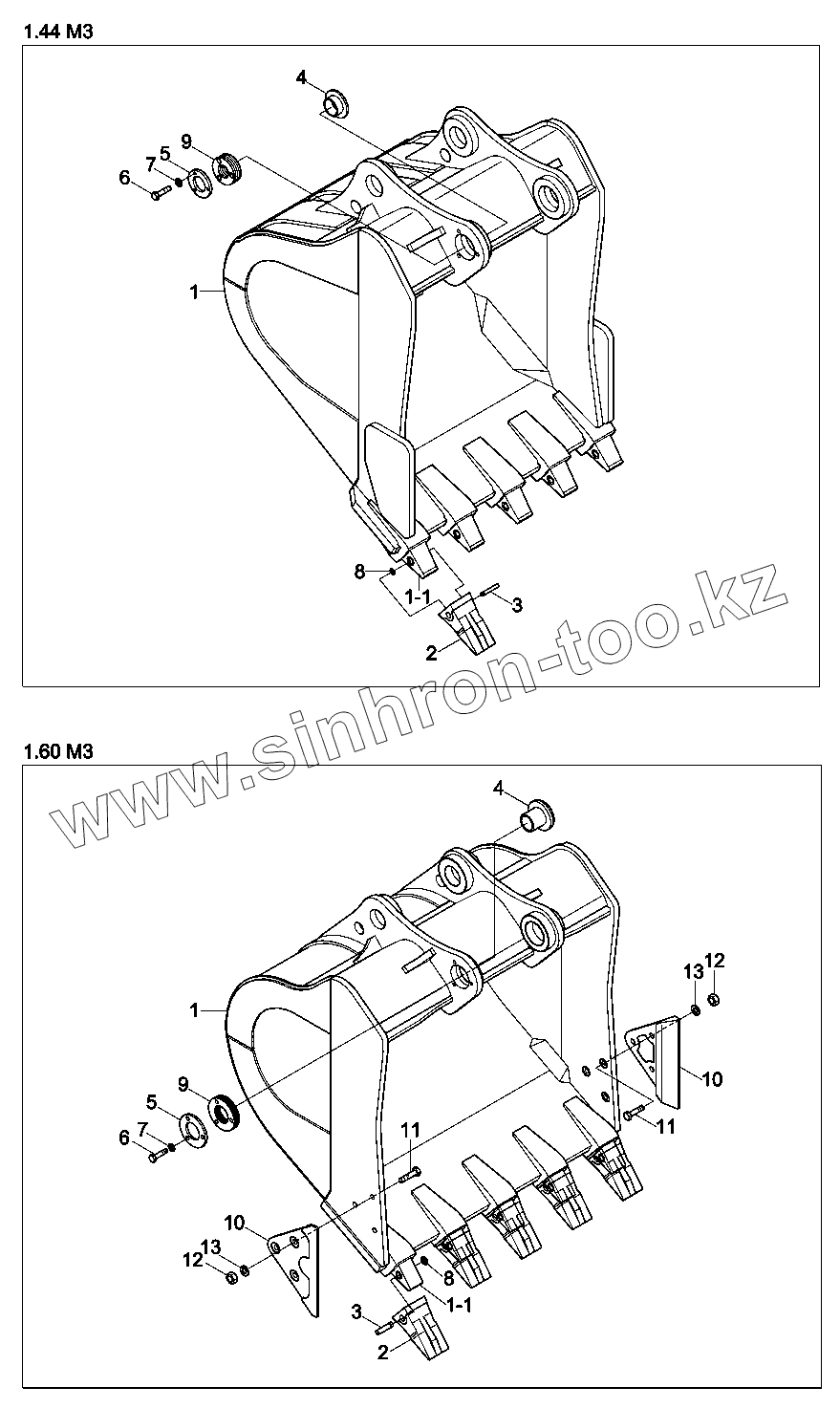 Каталог запасных частей к технике: Hyundai R330LC-9A. BUCKET (5 TEETH, HEAVY DUTY)