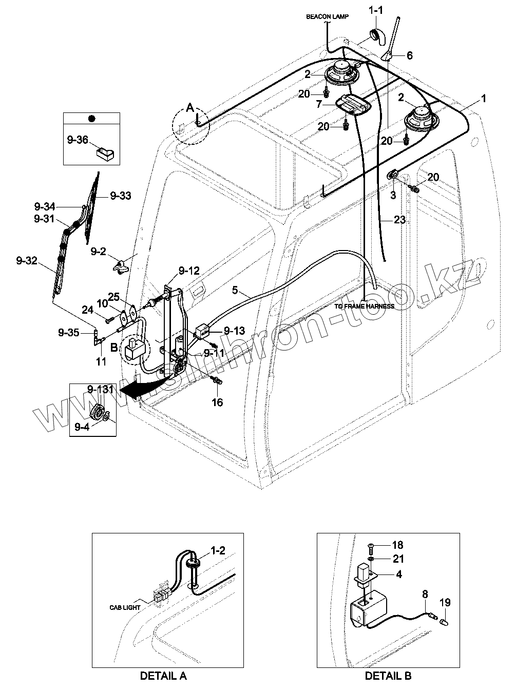 Каталог запасных частей к технике: Hyundai R330LC-9A. CAB ELECTRIC 1