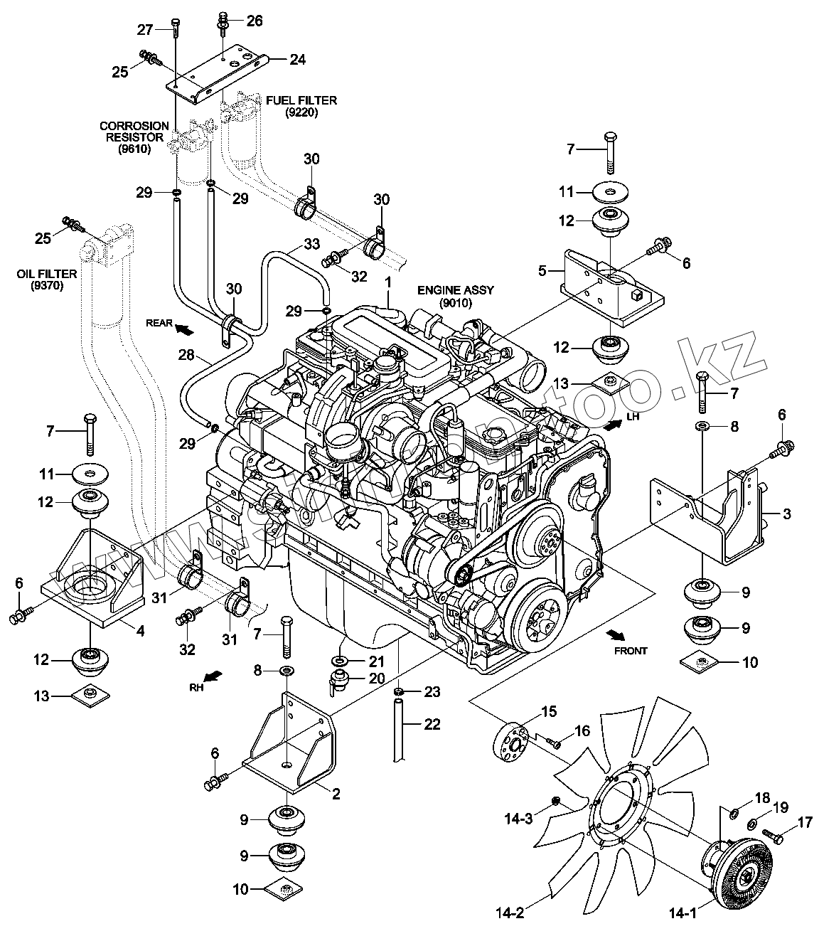 Каталог запасных частей к технике: Hyundai R330LC-9A. ENGINE MOUNTING