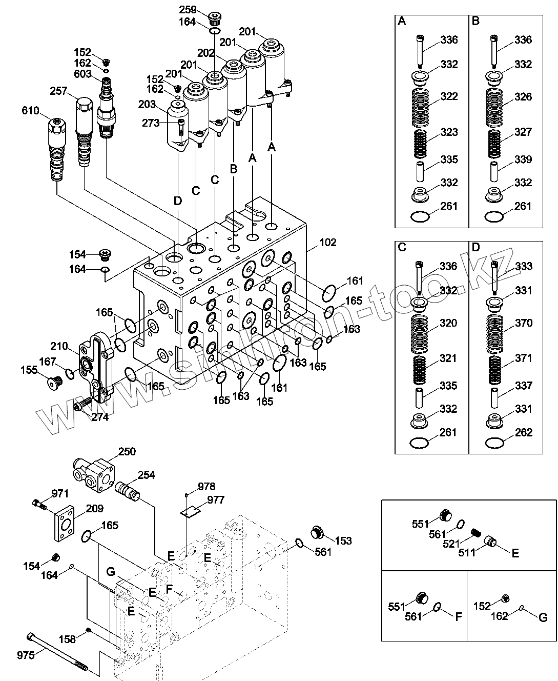 Каталог запасных частей к технике: Hyundai R330LC-9A. MAIN CONTROL VALVE (3/4)