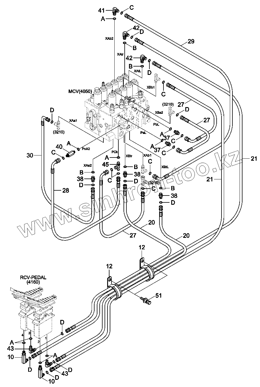 Каталог запасных частей к технике: Hyundai R330LC-9A. PILOT HYDRAULIC PIPING (CONTROL 3)