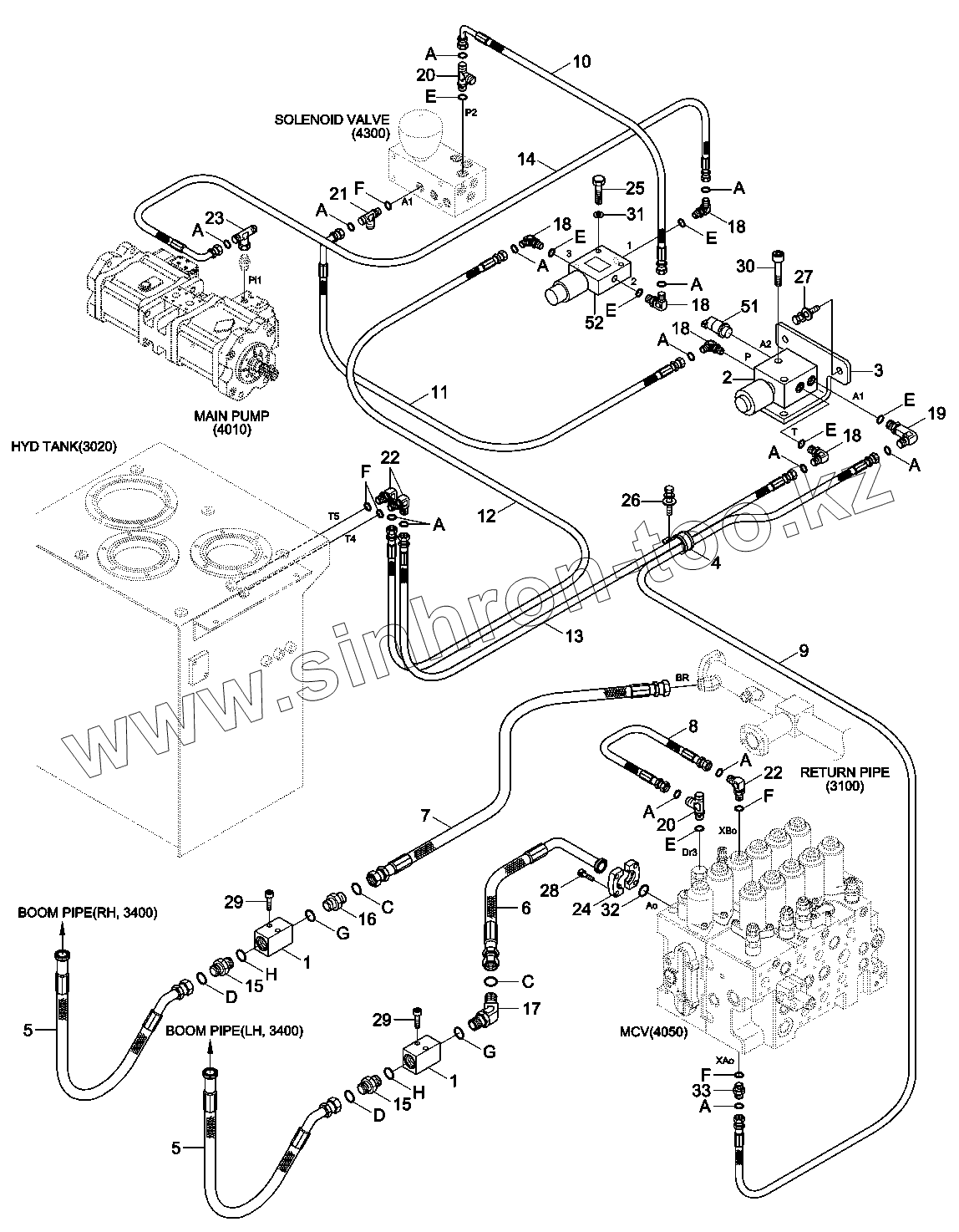 Каталог запасных частей к технике: Hyundai R330LC-9A. SINGLE ACTING MAIN PIPING KIT