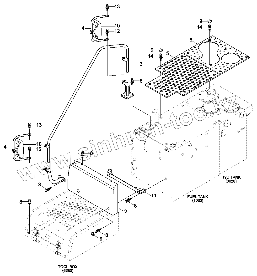 Каталог запасных частей к технике: Hyundai R330LC-9A. TOOL BOX MOUNTING