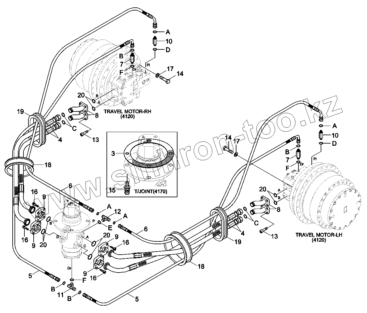 Каталог запасных частей к технике: Hyundai R330LC-9A. TRAVEL HYD PIPING (HIGH WALKER)