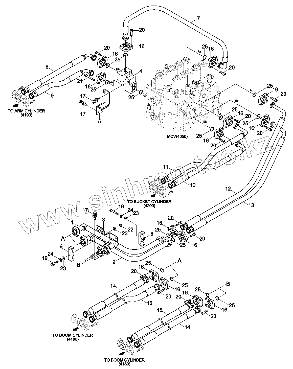 Каталог запасных частей к технике: Hyundai R330LC-9A. UPPER HYDRAULIC PIPING (ATTACH)