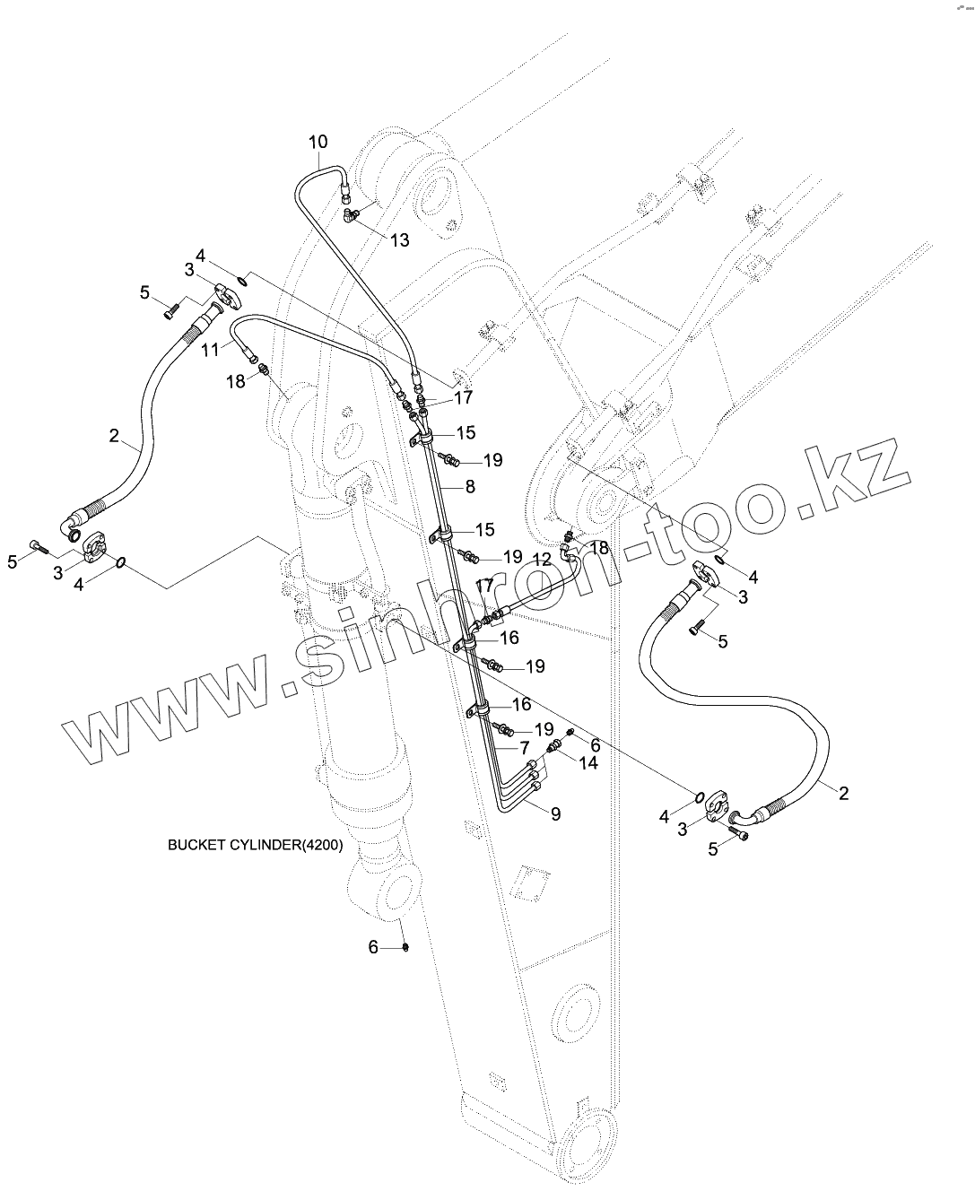Каталог запасных частей к технике: Hyundai R330LC-9S. ARM HYD PIPING (2.5M)