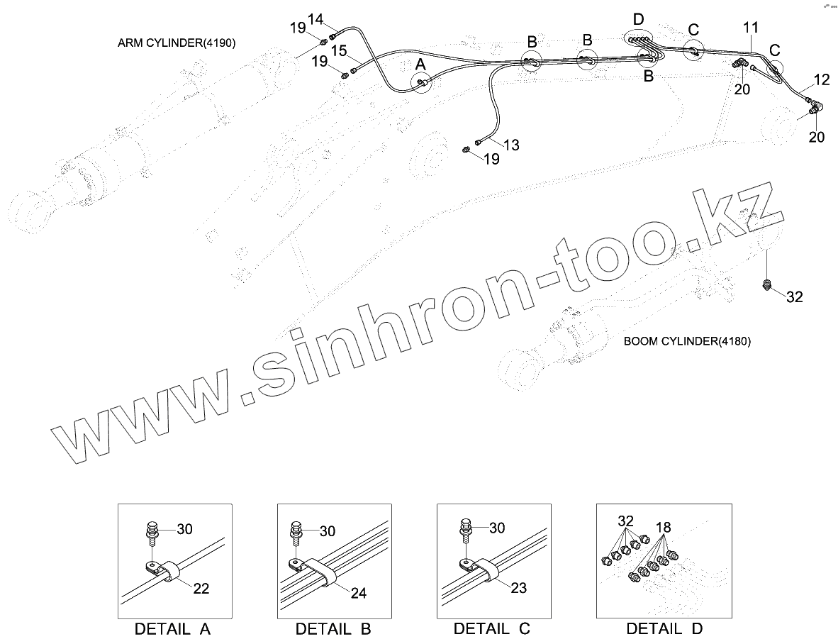 Каталог запасных частей к технике: Hyundai R330LC-9S. BOOM GREASE LUB SYS (6.15M)
