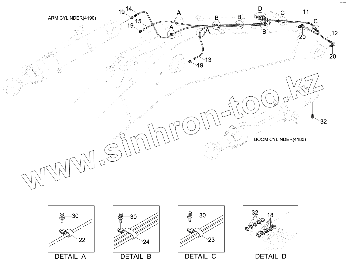Каталог запасных частей к технике: Hyundai R330LC-9S. BOOM GREASE LUB SYS (6.45M, STD)