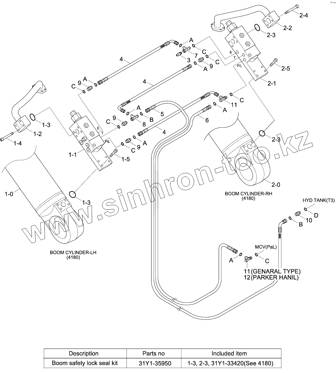 Каталог запасных частей к технике: Hyundai R330LC-9S. BOOM SAFTY ROCK SYSTEM