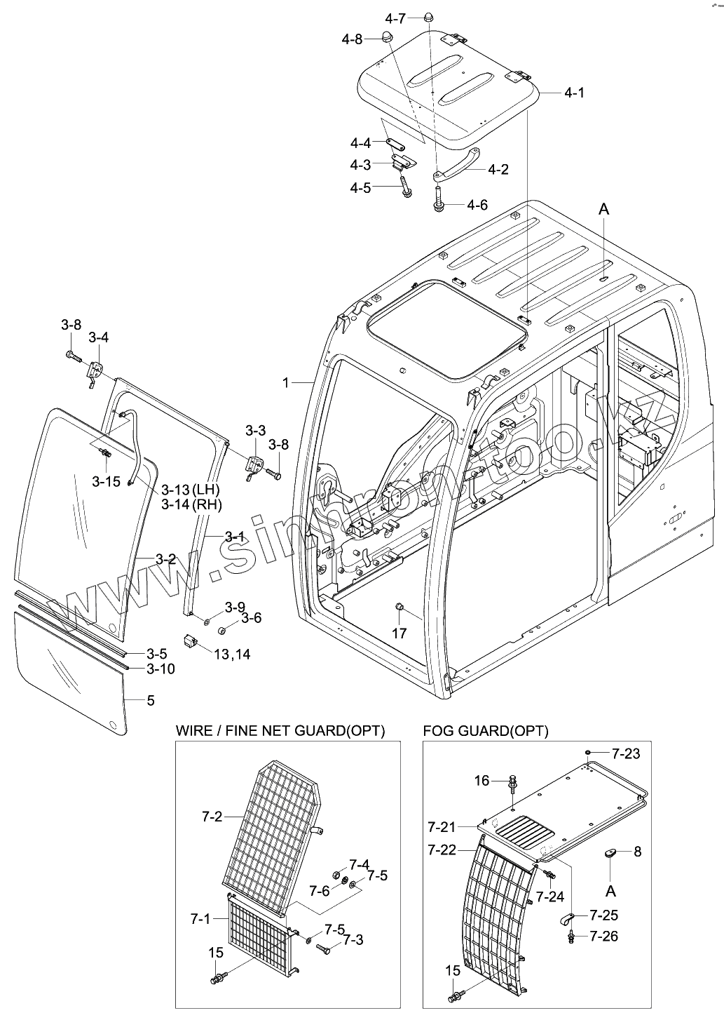 Каталог запасных частей к технике: Hyundai R330LC-9S. CAB ASSY (1/4)