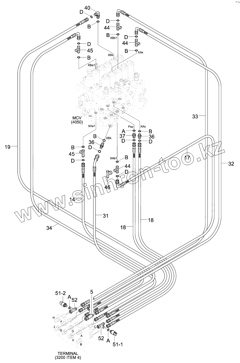 Каталог запасных частей к технике: Hyundai R330LC-9S. PILOT HYD PIPING (CONTROL 2)
