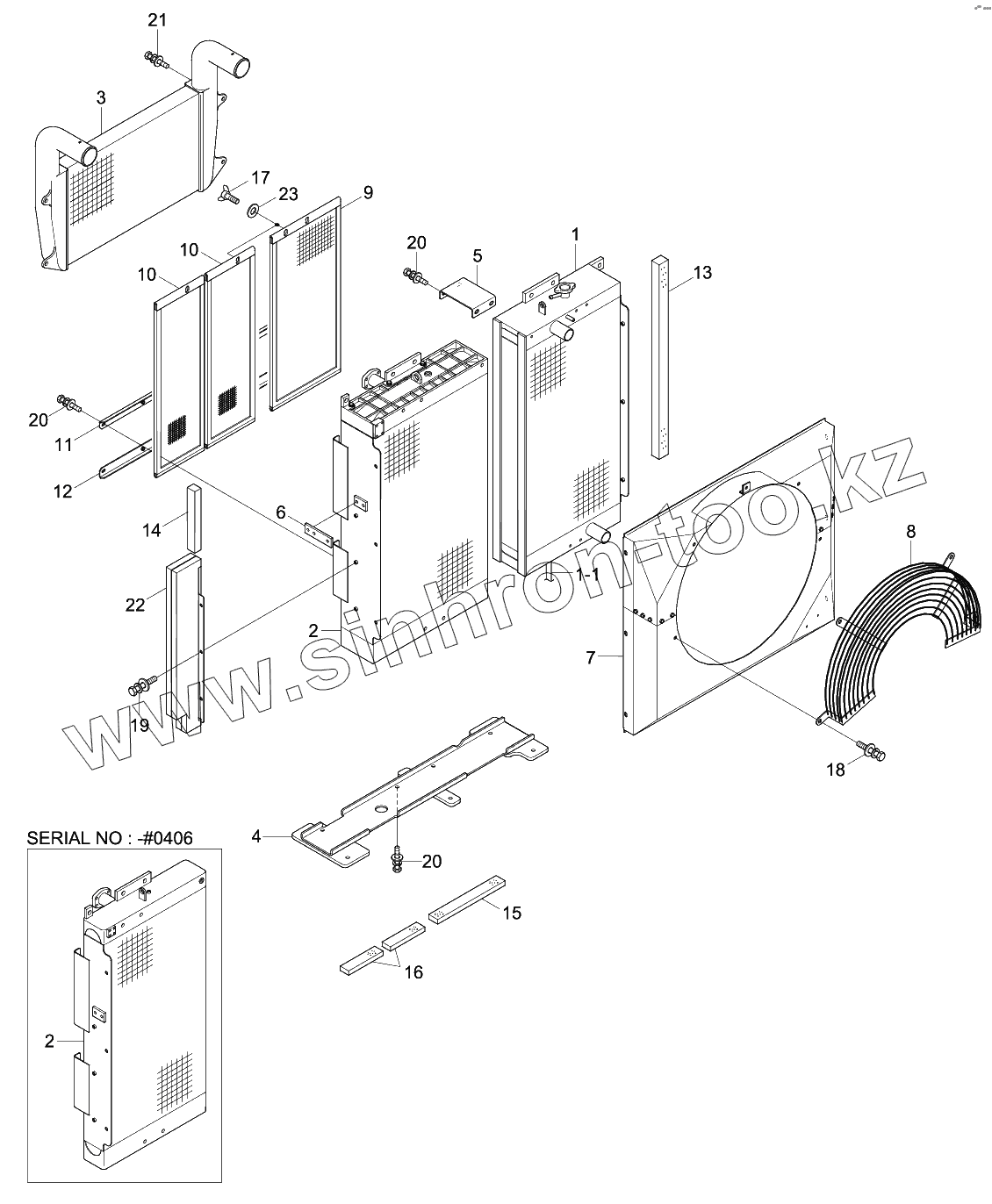 Каталог запасных частей к технике: Hyundai R330LC-9S. RADIATOR ASSY