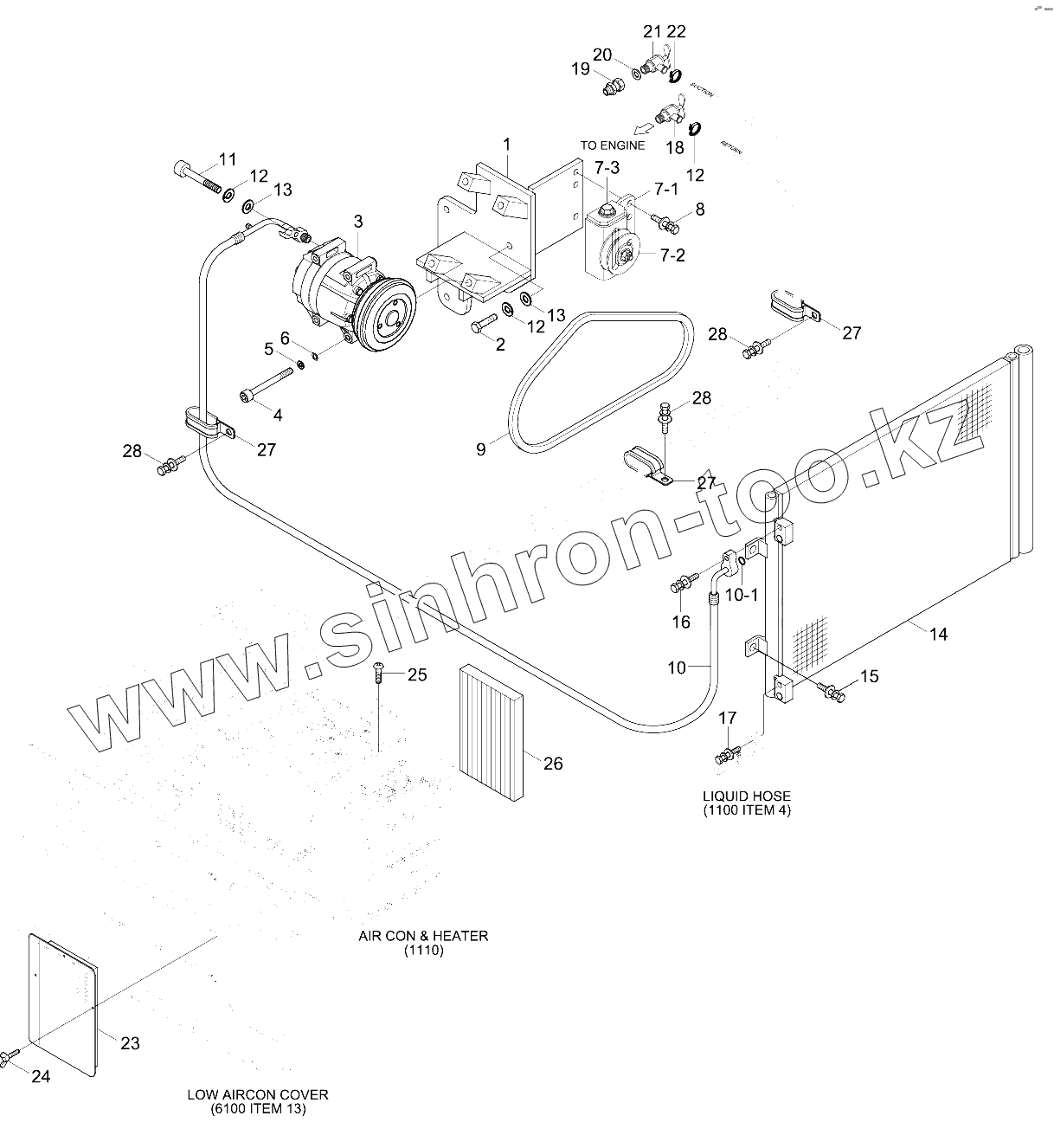 Каталог запасных частей к технике: Hyundai R330LC-9SH. AIRCON & HEATER GROUP