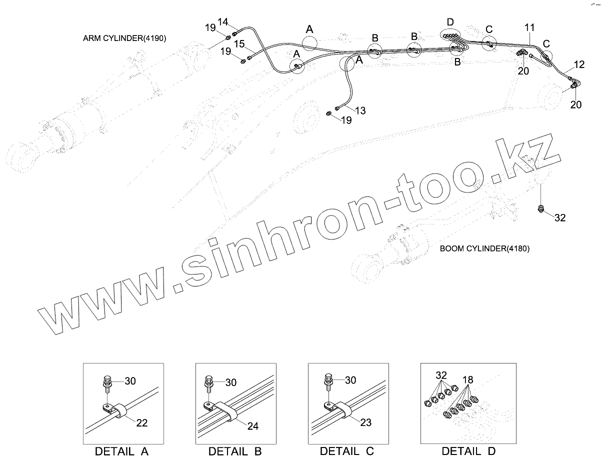 Каталог запасных частей к технике: Hyundai R330LC-9SH. BOOM GREASE LUB SYSTEM (6.45M, STD)