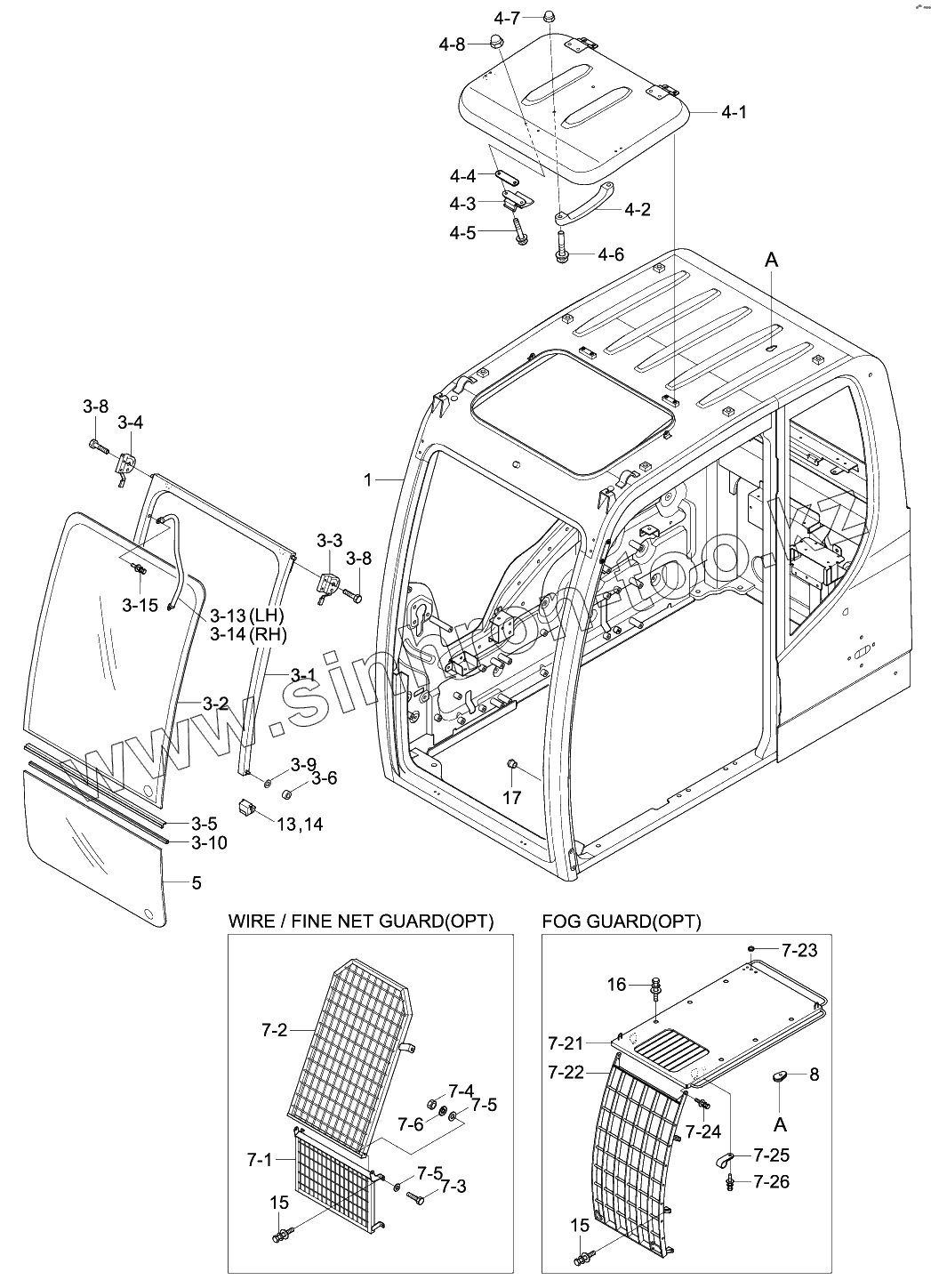 Каталог запасных частей к технике: Hyundai R330LC-9SH. CAB ASSY (1/4)
