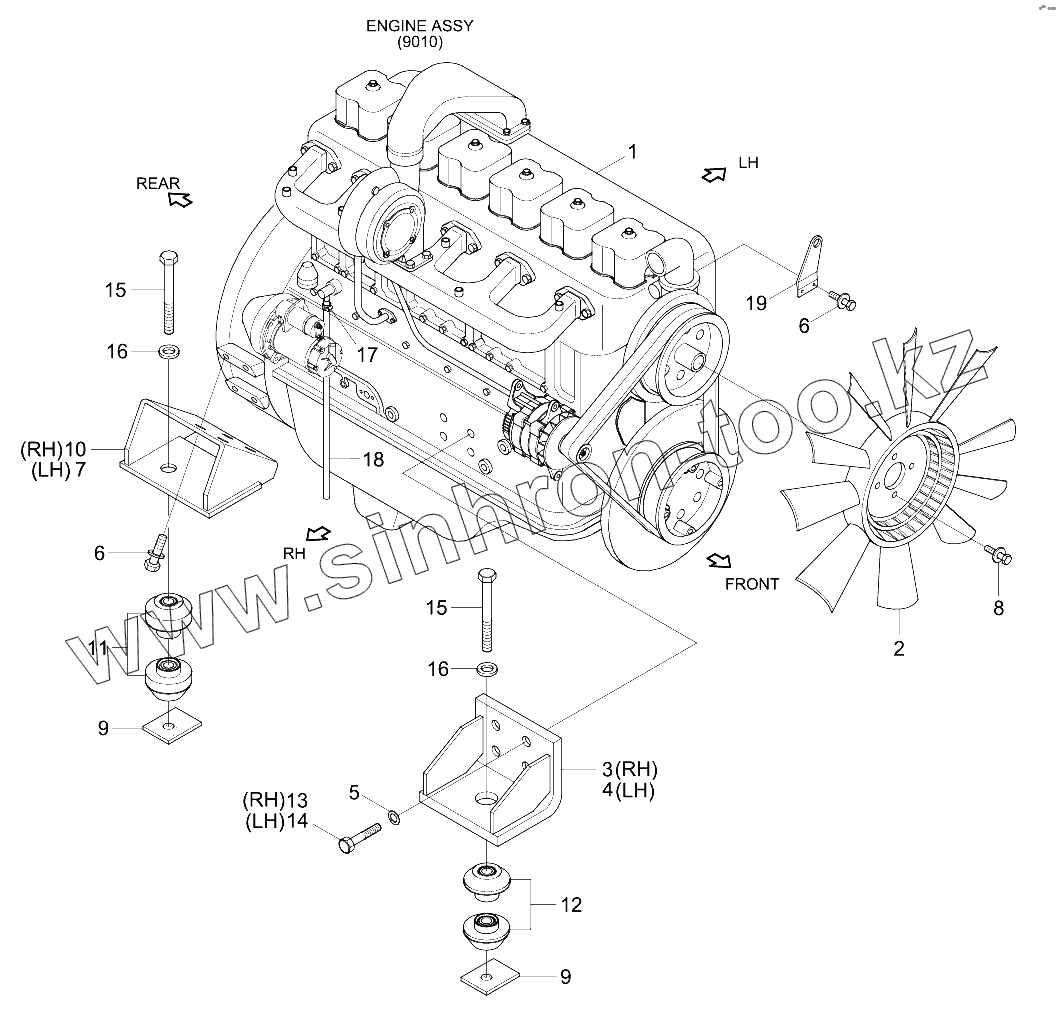 Каталог запасных частей к технике: Hyundai R330LC-9SH. ENGINE MOUNTING