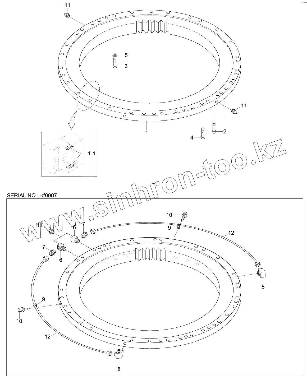 Каталог запасных частей к технике: Hyundai R330LC-9SH. SWING RING GREASE LUB SYSTEM