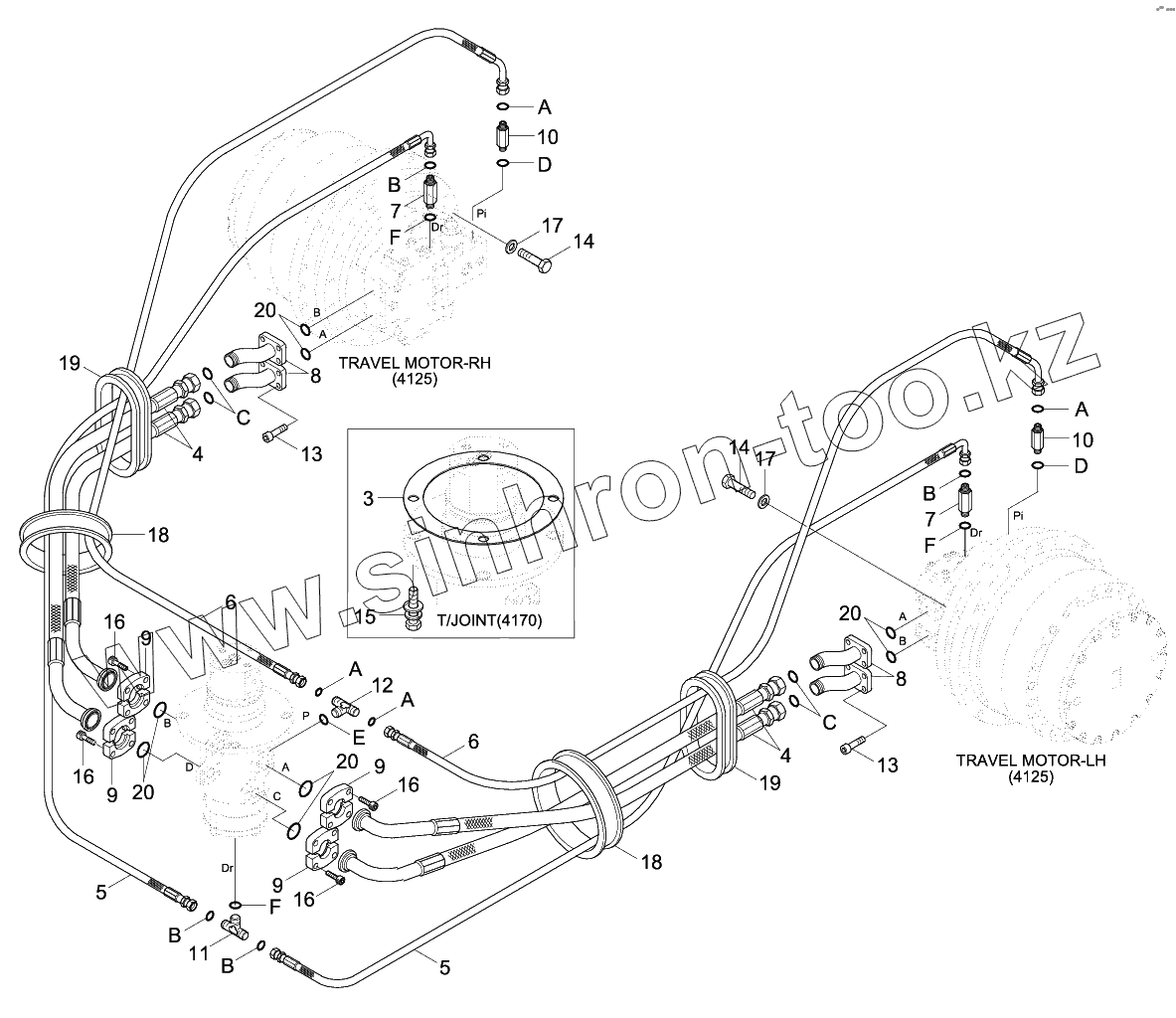 Каталог запасных частей к технике: Hyundai R330LC-9SH. TRAVEL HYD PIPING (HIGH WALKER)