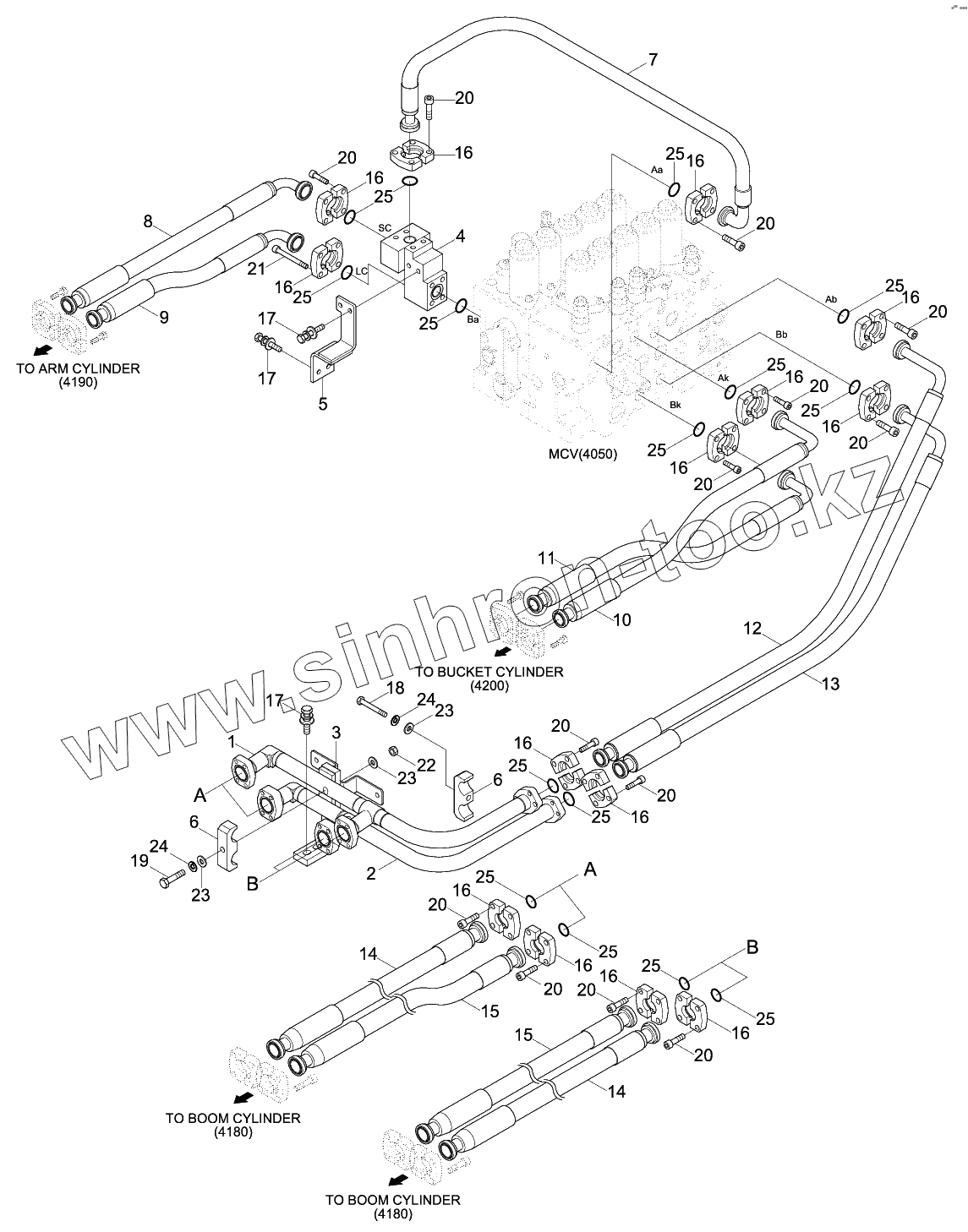 Каталог запасных частей к технике: Hyundai R330LC-9SH. UPPER HYD PIPING (ATTACH)