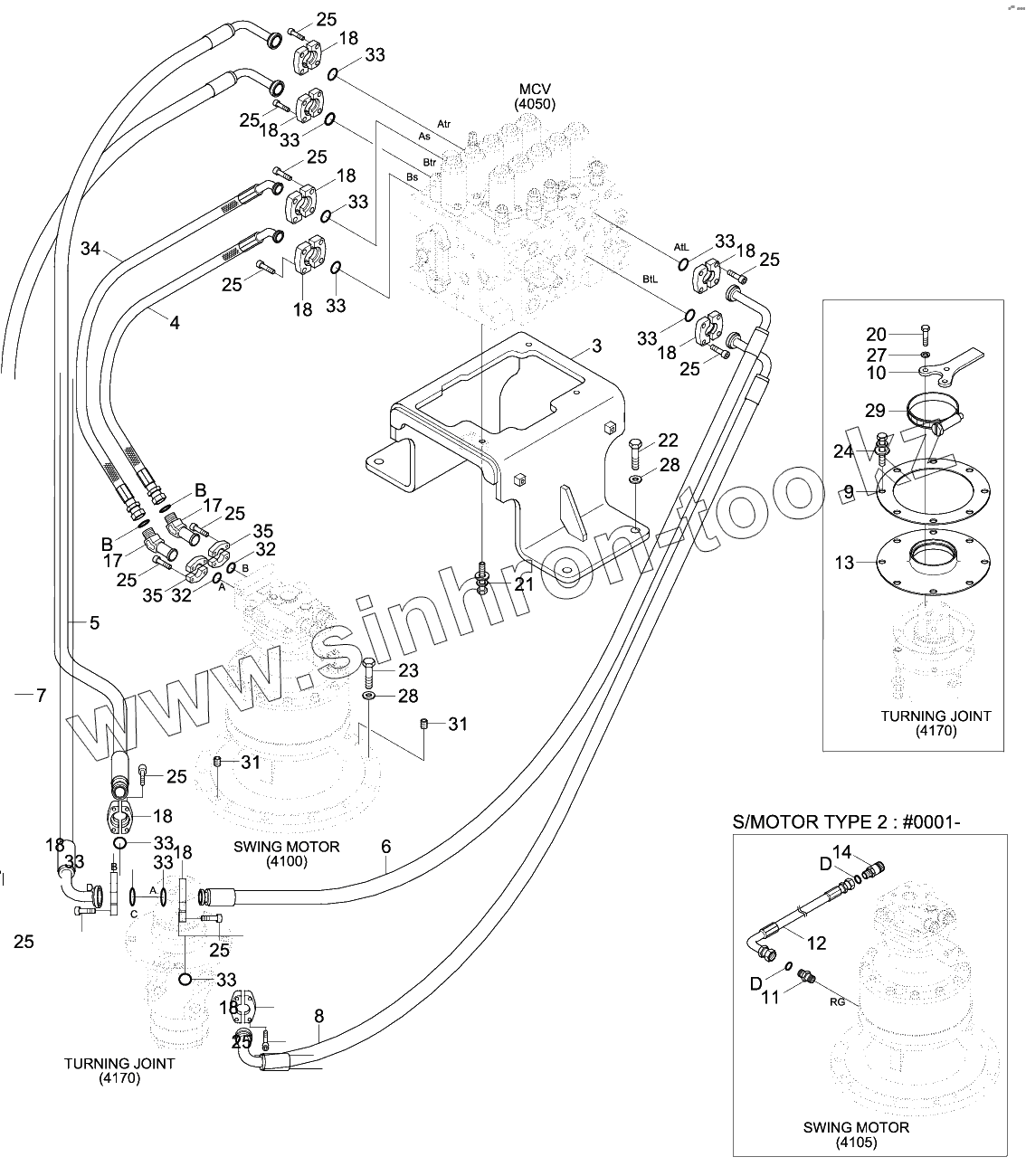 Каталог запасных частей к технике: Hyundai R330LC-9SH. UPPER HYD PIPING (TRAVEL)