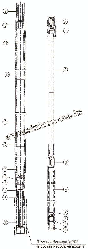 Каталог запасных частей к технике: Ижнефтемаш ГШН. Насос вставной с нижним механическим креплением 25-150 RHBM