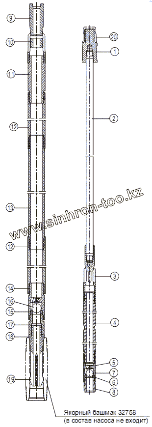 Башмак якорный (переходный) для механического крепления по API вставных насосов 25/20-… RHM-T