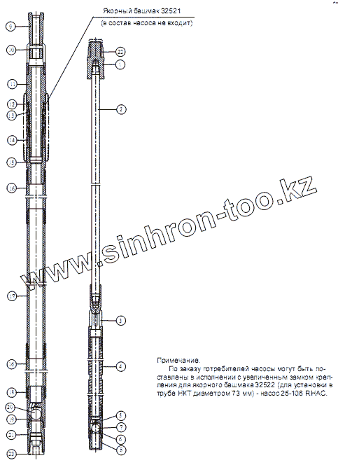 Каталог запасных частей к технике: Ижнефтемаш ГШН. Насос вставной с верхним манжетным креплением 20-106 RHАС