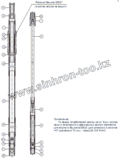 Каталог запасных частей к технике: Ижнефтемаш ГШН. Насос вставной с верхним манжетным креплением 20-125 RHАС